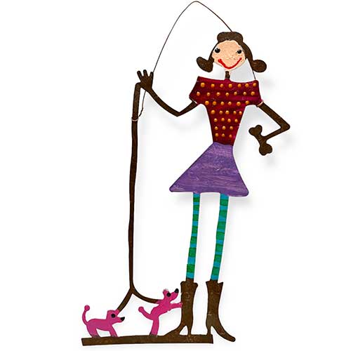 This is a collaboration between Bill and Marcia, The figures are hand cut from recycled metal, filed so there are no sharp edges, painted, and sealed. This piece is 7.5" Tall and 3.75" wide. Ships free USPS first class mail.