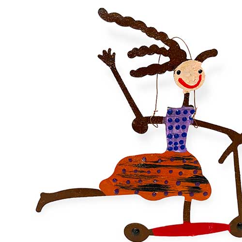 This is a collaboration between Bill and Marcia, The figures are hand cut from recycled metal, filed so there are no sharp edges, painted, and sealed. This piece is 6" Tall and 5.5" wide. Ships free USPS first class mail.