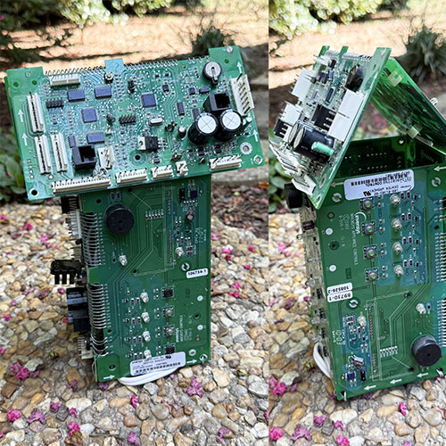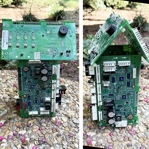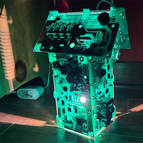 Presented for your amusement, a circuit board night/accent lamp. Created with discarded circuit boards. UL approved lighting fixture. Cord off and on switch. Every sculpture is handmade & therefore unique. Measures 10.5" tall and about 7.5" wide and 4.75deep.