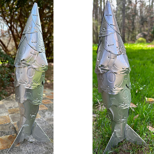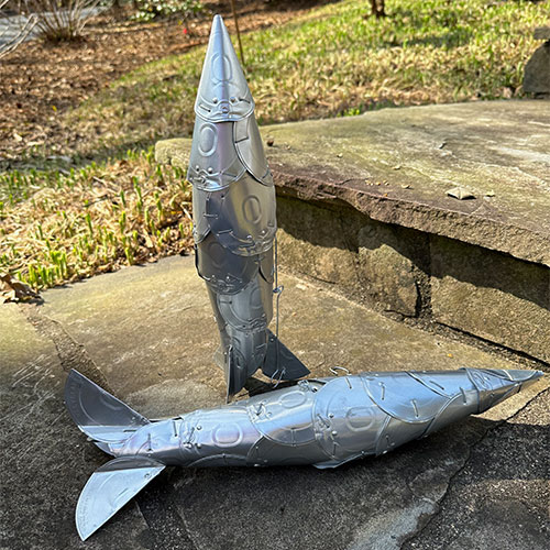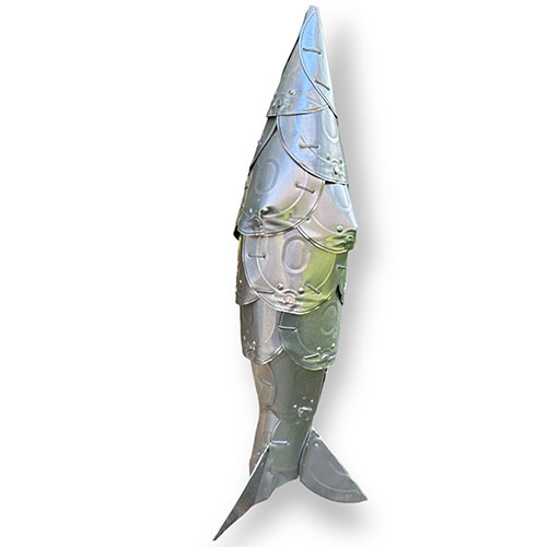 An army of friends and acquaintances work tirelessly to keep John supplied with items used to create his pieces. This piece measures 14.5" tall and is 5" wide . Made to dangle in your backyard tree.