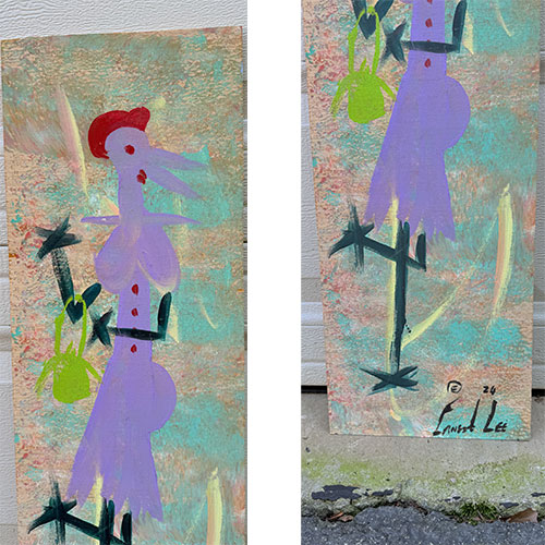 Those who know the work will understand measurements vary from panel to panel, as does the quality of the board used. Sometimes you'll find small blades of grass as part of the piece - not a purposeful addition - that's what happens as Ernest Lee paints and tosses his work to dry on the ground. If you expect a pristine, perfectly straight and smoothly cut piece of wood, you may want to consider another artist. Just say'n.