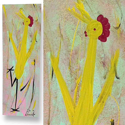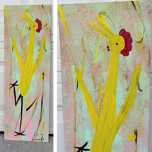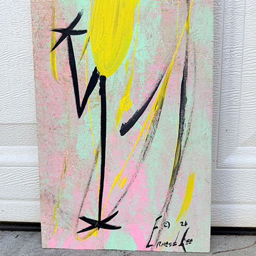 Those who know the work will understand measurements vary from panel to panel, as does the quality of the board used. Sometimes you'll find small blades of grass as part of the piece - not a purposeful addition - that's what happens as Ernest Lee paints and tosses his work to dry on the ground. If you expect a pristine, perfectly straight and smoothly cut piece of wood, you may want to consider another artist. Just say'n.