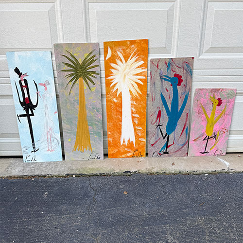Those who know the work will understand measurements vary from panel to panel, as does the quality of the board used. Sometimes you'll find small blades of grass as part of the piece - not a purposeful addition - that's what happens as Ernest Lee paints and tosses his work to dry on the ground. If you expect a pristine, perfectly straight and smoothly cut piece of wood, you may want to consider another artist. Just say'n.
