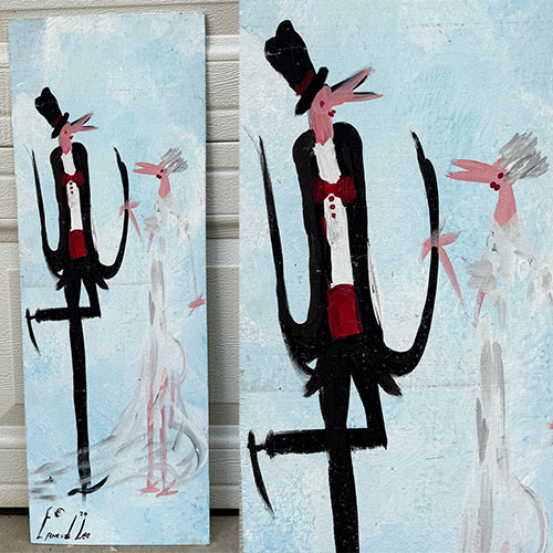 Those who know the work will understand measurements vary from panel to panel, as does the quality of the board used. Sometimes you'll find small blades of grass as part of the piece - not a purposeful addition - that's what happens as Ernest Lee paints and tosses his work to dry on the ground. If you expect a pristine, perfectly straight and smoothly cut piece of wood, you may want to consider another artist. Just say'n.