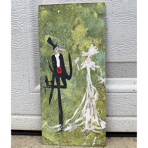 Those of you who know the work will understand measurements can vary from panel to panel, as does the quality of the board used. Sometimes you'll find small blades of grass as part of the piece - not a purposeful addition - that's what happens as Ernest Lee paints and tosses his work to dry on the ground.