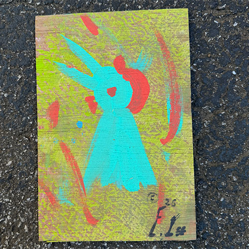 Those of you who know the work will understand measurements can vary from panel to panel, as does the quality of the board used. Sometimes you'll find small blades of grass as part of the piece - not a purposeful addition - that's what happens as Ernest Lee paints and tosses his work to dry on the ground.