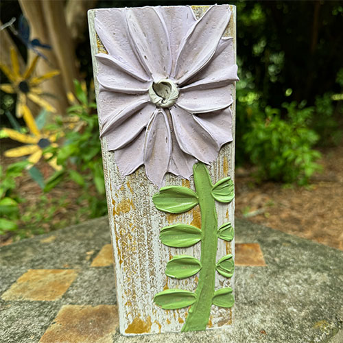 Painting is on wood block 3.5" x 9" x 1.5" Susan's characteristic technique of applying thick layers is evident.