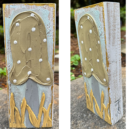 Painting is on wood block 3.5" x 9" x 1.5" Susan's characteristic technique of applying thick layers is evident.