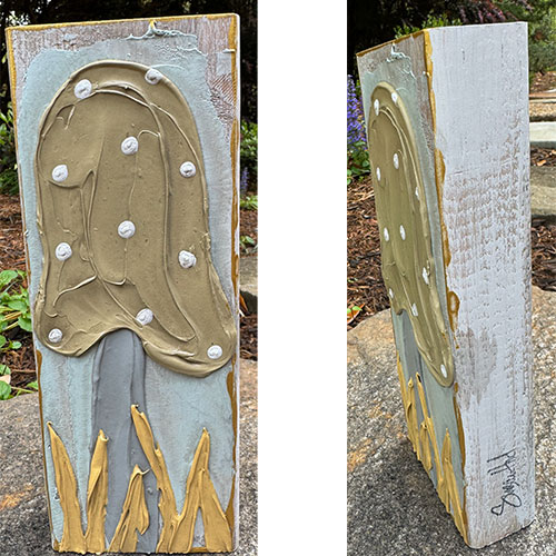 Painting is on wood block 3.5" x 9" x 1.5" Susan's characteristic technique of applying thick layers is evident.