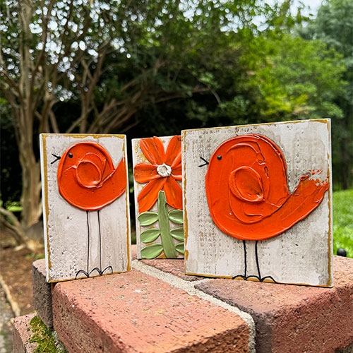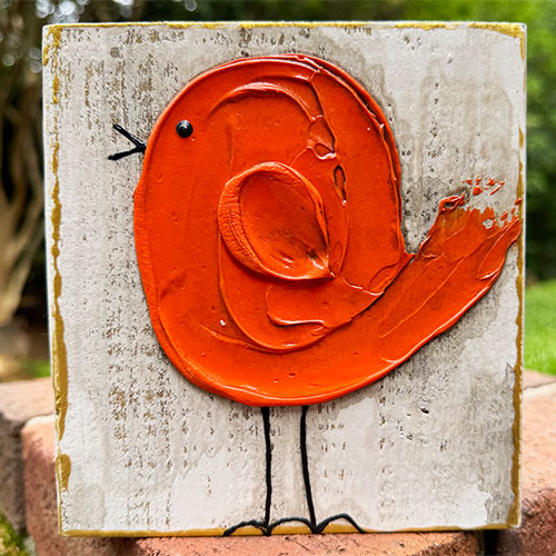 Painting is on wood block 5.5" x 5.5" x 1.5" Susan's characteristic technique of applying thick layers is evident.