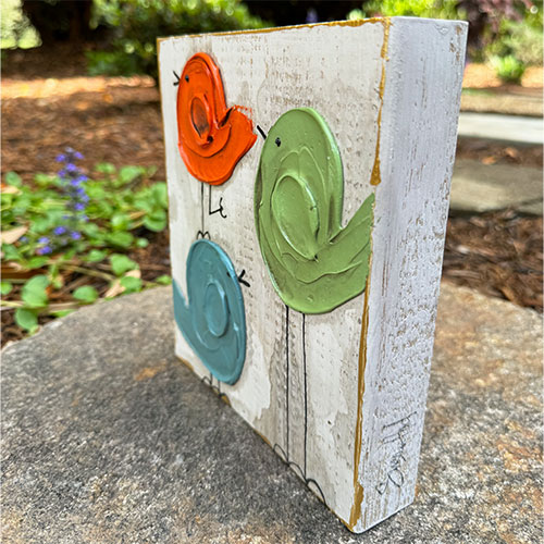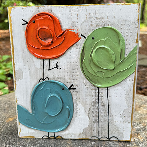 Painting is on wood 7" x 8" x 1.5" Susan's characteristic technique of applying thick layers is evident.