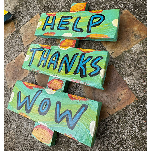 BeBo paints his work using enamel paint so the pieces can be hung outside if you want to. He also make angels and signs with inspirational messages on them. He paints them to remind him how to live. He's am a musician and loves the blues, so he makes “Bluesmen”, too. BeBo says, "God has blessed me through my art."