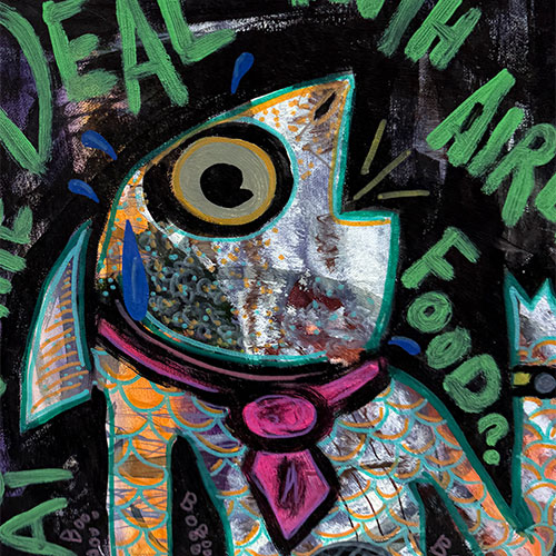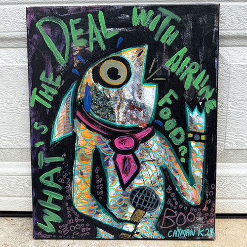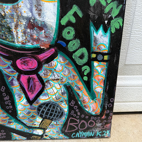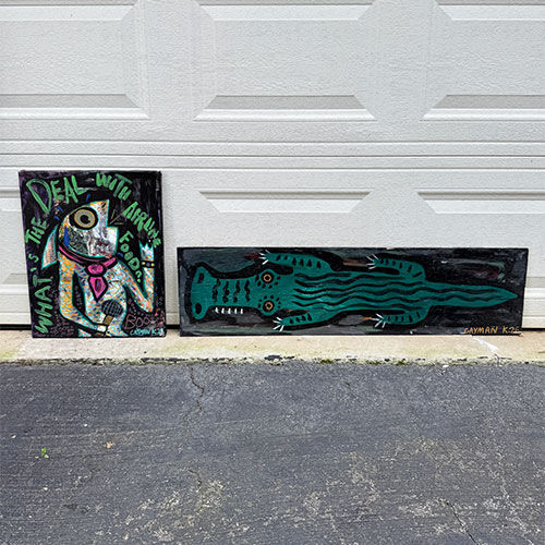 "My work is mainly based off of wacky characters that I’ve created over the years with the occasional head nod to pop-culture references within media and film. Originally I use to paint mainly on canvas until I attended Tony Dotson’s show at the Orphanage Gallery in Dayton Ohio. After meeting him, he inspired me to explore what I could do creatively with found wood." -Cayman K