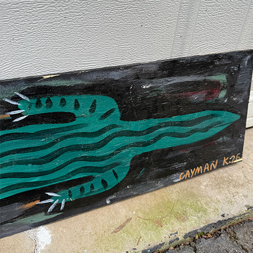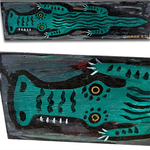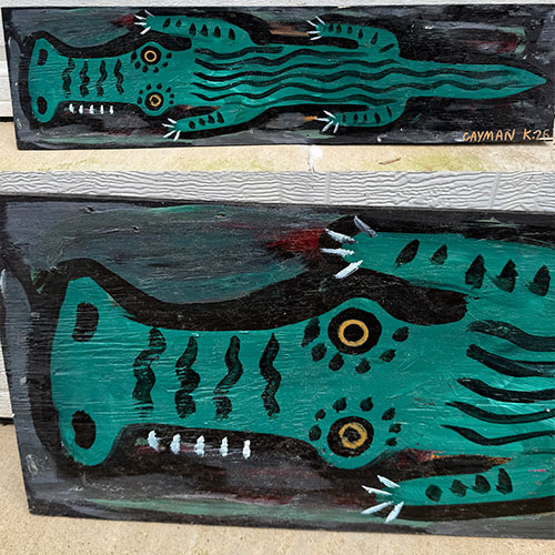 "My work is mainly based off of wacky characters that I’ve created over the years with the occasional head nod to pop-culture references within media and film. Originally I use to paint mainly on canvas until I attended Tony Dotson’s show at the Orphanage Gallery in Dayton Ohio. After meeting him, he inspired me to explore what I could do creatively with found wood." -Cayman K