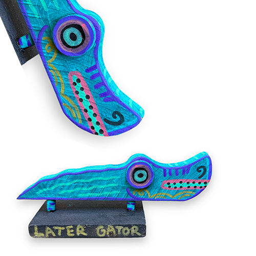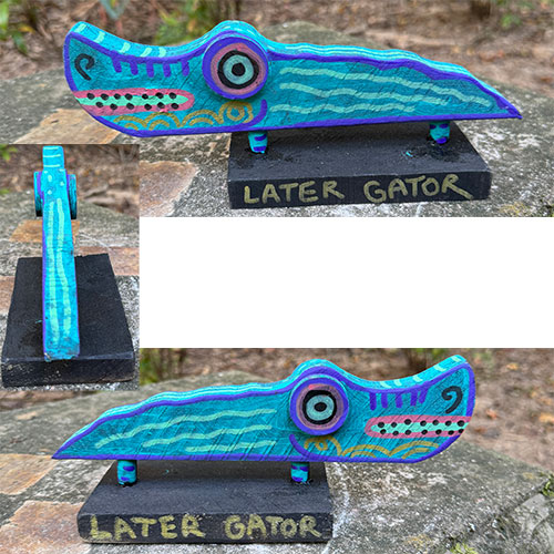 "My work is mainly based off of wacky characters that I’ve created over the years with the occasional head nod to pop-culture references within media and film. Originally I use to paint mainly on canvas until I attended Tony Dotson’s show at the Orphanage Gallery in Dayton Ohio. After meeting him, he inspired me to explore what I could do creatively with found wood." -Cayman K