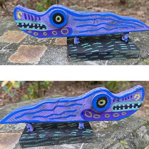 "My work is mainly based off of wacky characters that I’ve created over the years with the occasional head nod to pop-culture references within media and film. Originally I use to paint mainly on canvas until I attended Tony Dotson’s show at the Orphanage Gallery in Dayton Ohio. After meeting him, he inspired me to explore what I could do creatively with found wood." -Cayman K