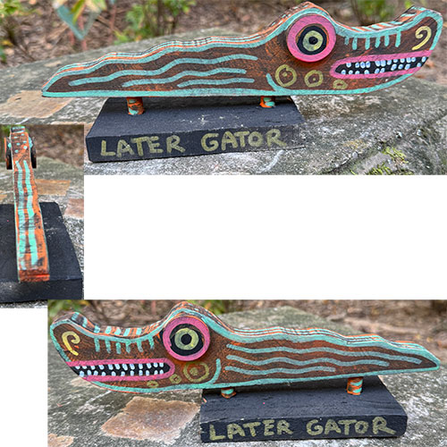 "My work is mainly based off of wacky characters that I’ve created over the years with the occasional head nod to pop-culture references within media and film. Originally I use to paint mainly on canvas until I attended Tony Dotson’s show at the Orphanage Gallery in Dayton Ohio. After meeting him, he inspired me to explore what I could do creatively with found wood." -Cayman K