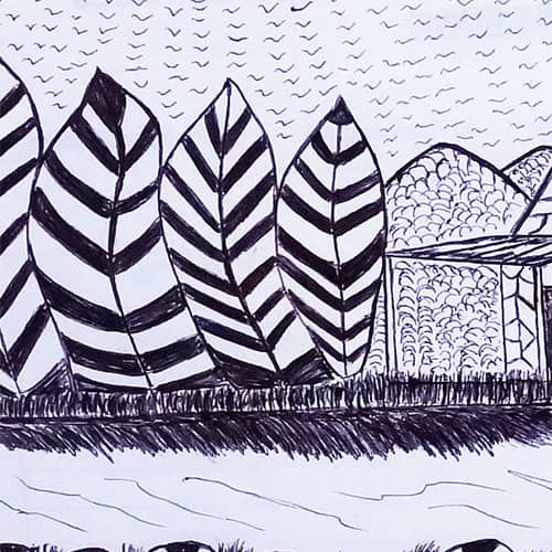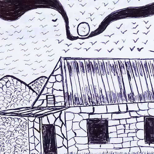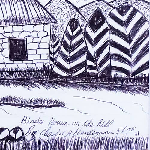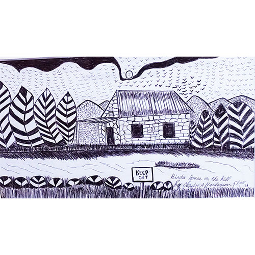There was a time when Charles found himself spending a little time as a guest of the state. That's another story and it's his to tell. But as a result of that time, he created numerous pen and ink drawings. They were drawn on the reverse side of prison forms, like commissary requests, rules, etc. He spent a good deal of his time keeping busy in this way. The images are drawn from his imagination and remembrances of the area where he grew up. He mentioned that everywhere he went there were "Keep Out" signs and they are a reoccurring image within his work.