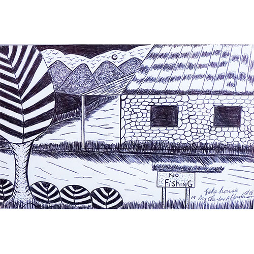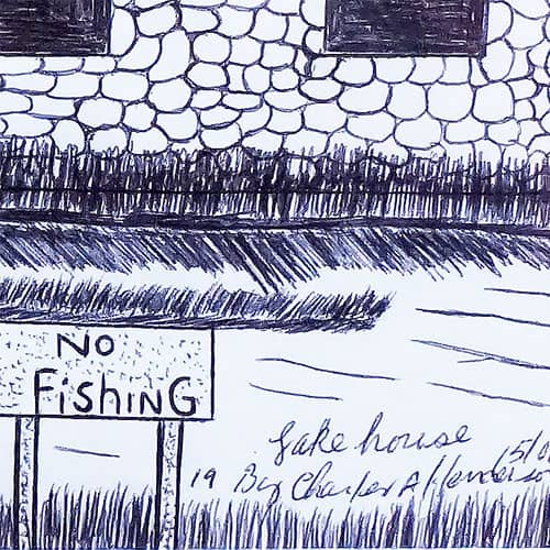There was a time when Charles found himself spending a little time as a guest of the state. That's another story and it's his to tell. But as a result of that time, he created numerous pen and ink drawings. They were drawn on the reverse side of prison forms, like commissary requests, rules, etc. He spent a good deal of his time keeping busy in this way. The images are drawn from his imagination and remembrances of the area where he grew up. He mentioned that everywhere he went there were "Keep Out" signs and they are a reoccurring image within his work.
