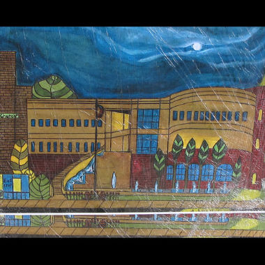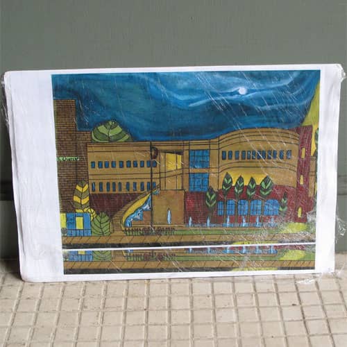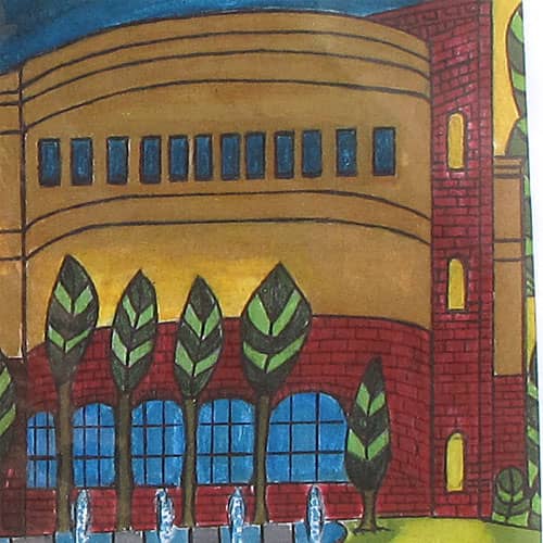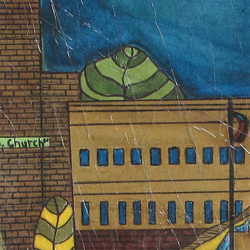 We like to think of Charles as our historian. He has made the surrounding buildings subjects of his art work. He paints what he sees. If there is a traffic light, a sign, or tree in front of a building - he will include it in his painting.