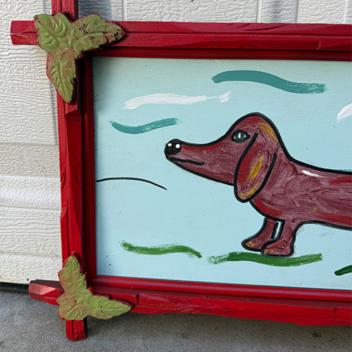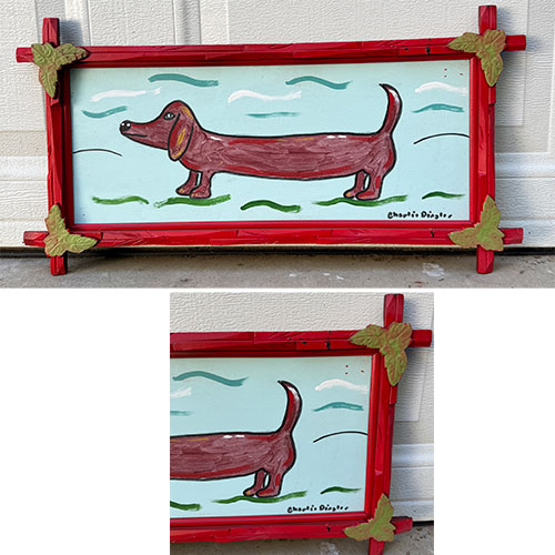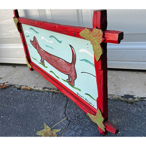 This piece is 26" wide x 13.5" long and .75" deep. Acrylic on wood, framed. The painting section is 20.5" wide and 8" long.