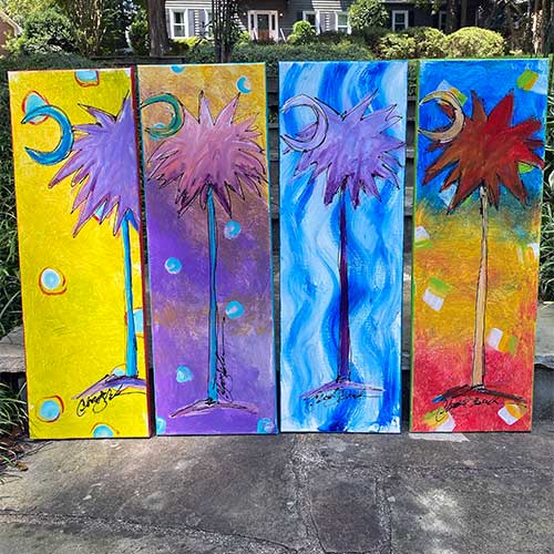Fun folk art original acrylic paintings are created by Christy Buchanan in her studio snuggled inside her SHE garden. Perfect house warming and girlfriend gifts.