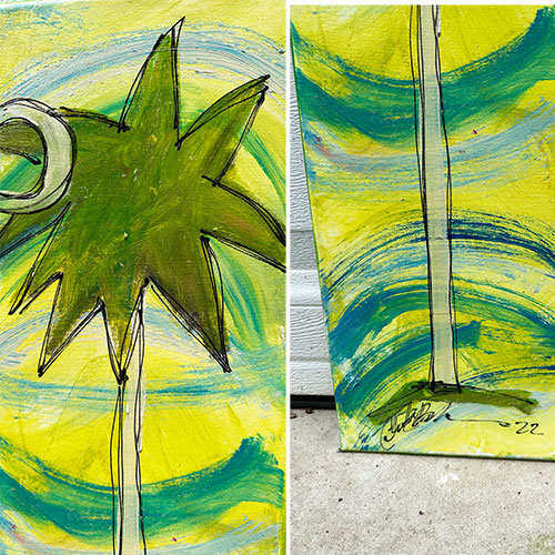 Fun folk art original acrylic paintings are created by Christy Buchanan in her studio snuggled inside her SHE garden. Perfect girlfriend gifts.