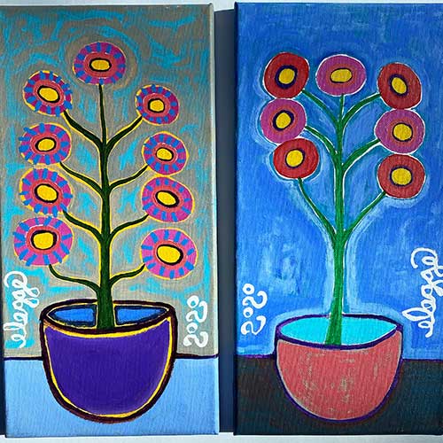 This painting is acrylic on gallery wrapped canvas measuring 7" wide, 14" long and .5" deep.