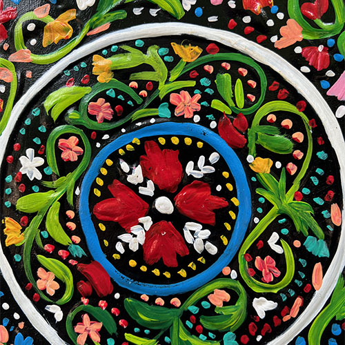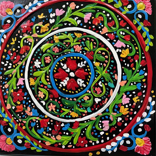 Ilona Fekete was born in a small town in Hungary in 1953. The daughter of a farmer, Ilona developed her love of traditional Hungarian crafts such as crocheting and fine needle embroidery, which were passed down through the generations. Upon coming to Canada at the age of 16, Ilona married and had 3 daughters. While raising a family, she developed her love of folk art painting by studying traditional European folk artists. Now semi-retired, Ilona spends her time developing naïve renderings of everyday life. Ilona’s paintings tell a story of rustic simplicity through bold colors and whimsical simplicity.