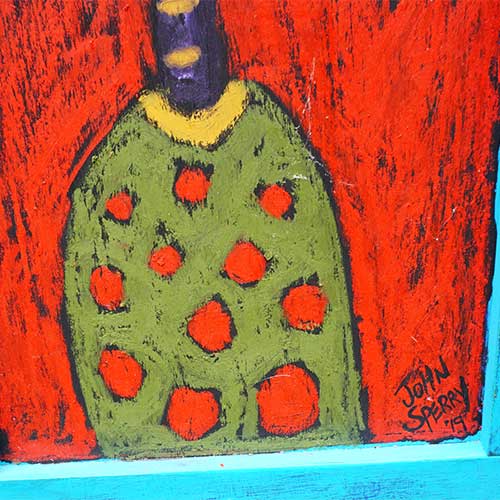 John Sperry is a self taught Southern Folk Artist who created this handsome guy acrylics on board. Framed, it is 1.25" deep. Measures 18" wide x 52" long.