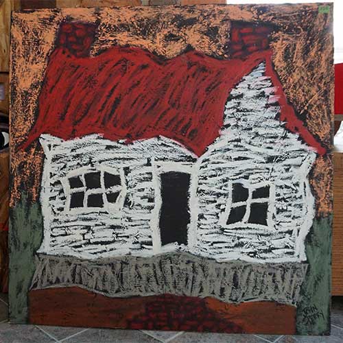 John Sperry is a self taught Southern Folk Artist who created this house with acrylics on board. Measures 30" wide x 30" long and .5" thick. Edges are painted black.