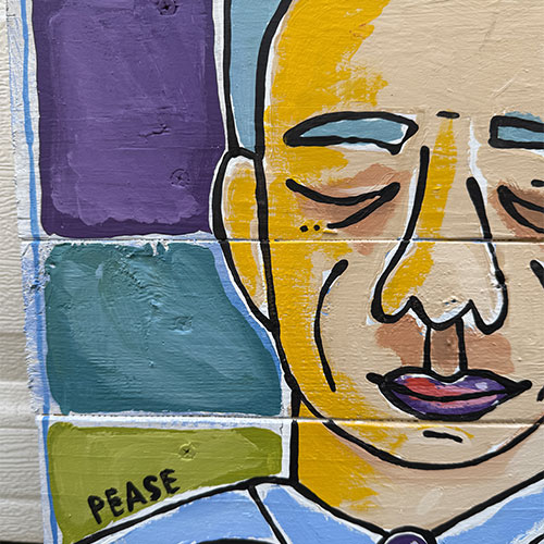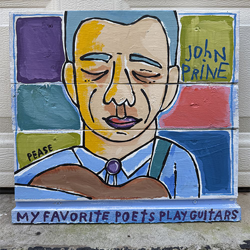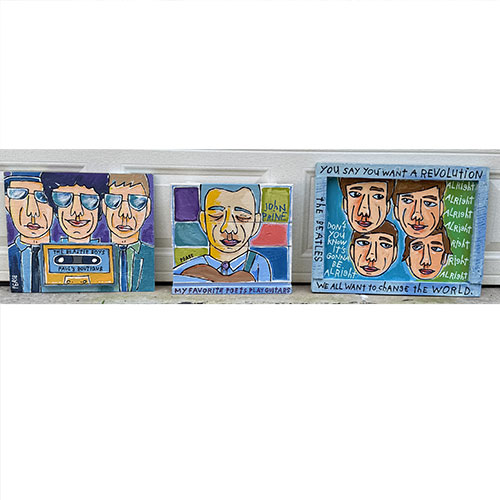 Ken Pease is an artist with an interesting path that led to making his art. He worked as a graphic artist for more than 25 years, and sells his paintings at art and music shows, galleries, and several of the House of Blues locations. His work is inspired by his love of music, and his kids. He paints on repurposed wood scraps, cabinet doors, and instruments.