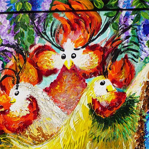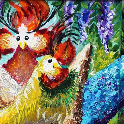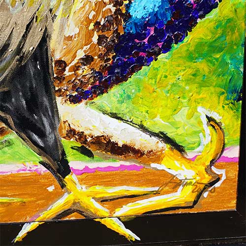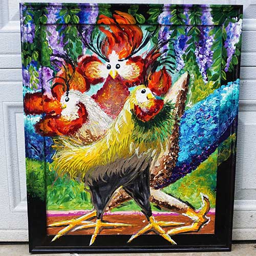 The total measurement of this piece is 24" wide and 27" tall. Painted on 20" x 24" canvas. Wired for hanging.