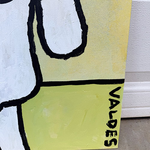 Measures 24" wide x 24" long and .75" deep. Acrylic on gallery wrapped canvas. Ships within the continental USA for $23. Does not ship outside the continental US.