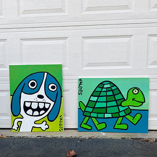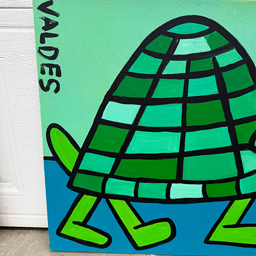 Measures 28" wide x 22" long and .75" deep. Acrylic on gallery wrapped canvas. Ships within the continental USA for $25. Does not ship outside the continental US.