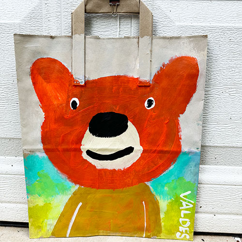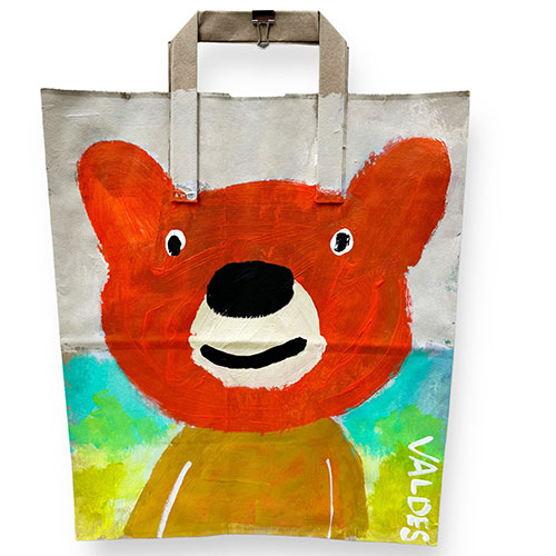 Measures 12" wide x 14" long (16.5" to handle top). Acrylic on your basic paper shopping bag. Hang by the clip or have it framed in a shadow box for maximum impact. Ships within the continental USA for $12. Does not ship outside the U.S.