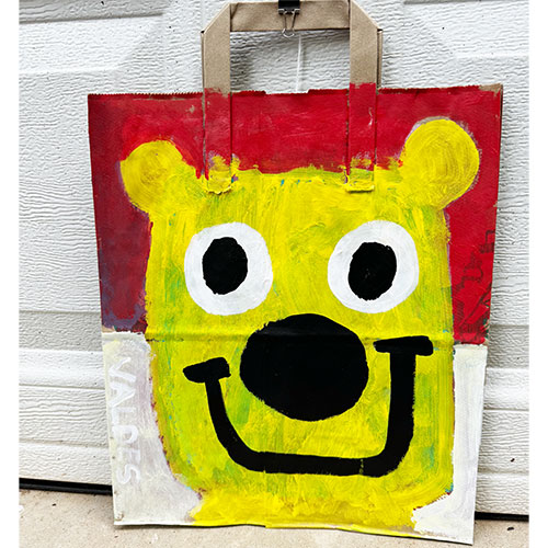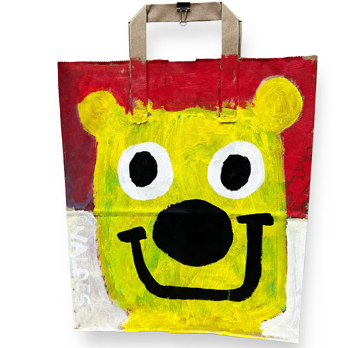 Measures 12" wide x 14" long (16.5" to handle top). Acrylic on your basic paper shopping bag. Hang by the clip or have it framed in a shadow box for maximum impact. Ships within the continental USA for $12. Does not ship outside the U.S.
