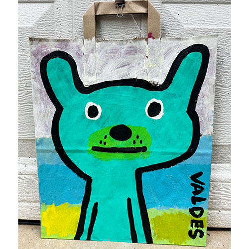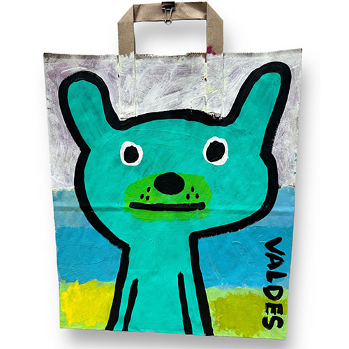 Measures 12" wide x 14" long (16.5" to handle top). Acrylic on your basic paper shopping bag. Hang by the clip or have it framed in a shadow box for maximum impact. Ships within the continental USA for $12. Does not ship outside the U.S.