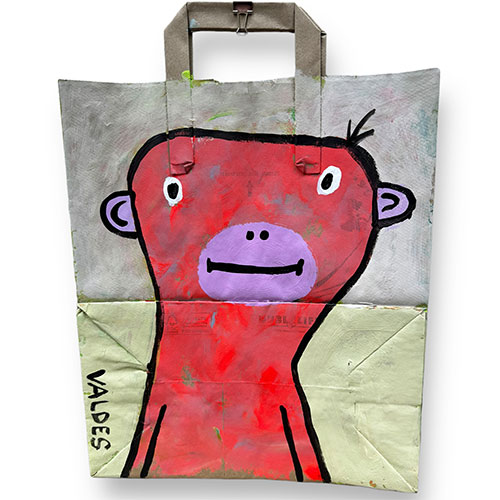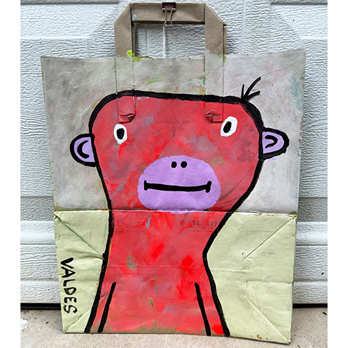 Measures 12" wide x 14" long (16.5" to handle top). Acrylic on your basic paper shopping bag. Hang by the clip or have it framed in a shadow box for maximum impact. Ships within the continental USA for $12. Does not ship outside the U.S.