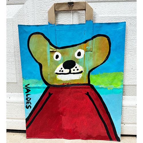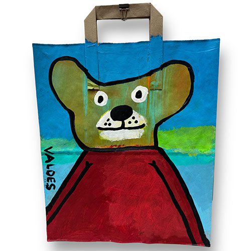 Measures 12" wide x 14" long (16.5" to handle top). Acrylic on your basic paper shopping bag. Hang by the clip or have it framed in a shadow box for maximum impact. Ships within the continental USA for $12. Does not ship outside the U.S.