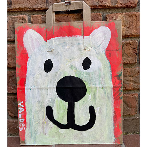 Measures 12" wide x 14" long (16.5" to handle top). Acrylic on your basic paper shopping bag. Hang by the clip or have it framed in a shadow box for maximum impact. Ships within the continental USA for $12. Does not ship outside the U.S.