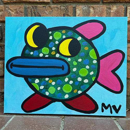 Measures 20" wide x 16" long and 1.5" deep. Acrylic on gallery wrapped canvas. Ships within the continental USA for $20. Does not ship out side the U.S.