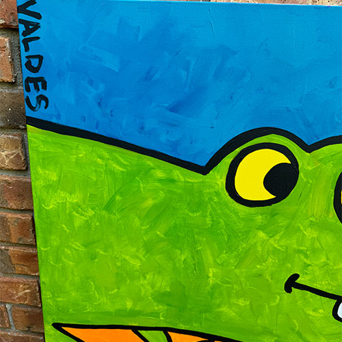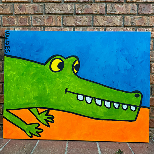 Measures 30" wide x 40" long and 1.5" deep. Acrylic on gallery wrapped canvas. LOCAL PICK UP ONLY We will not ship this piece as the cost is prohibative. We'll hold the door when you pick it up.