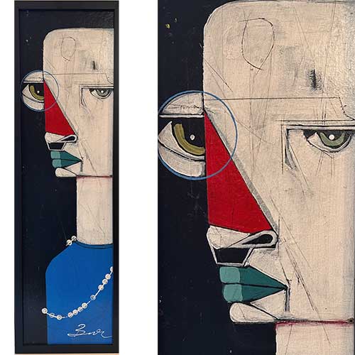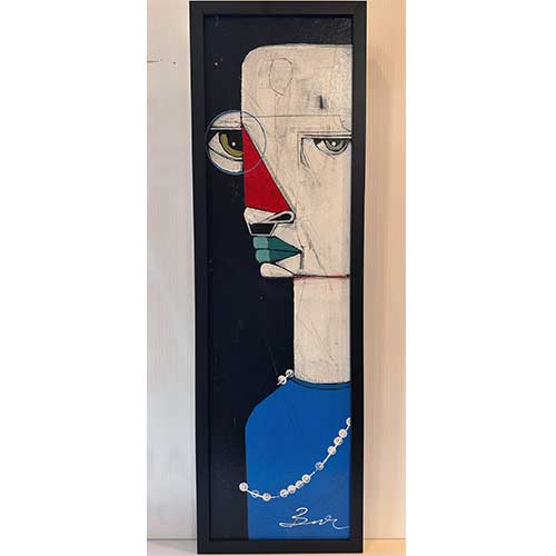 This original painting is framed simply to avoid detracting from the art. Measures 10.25" wide by 33" long. Painted on wood.