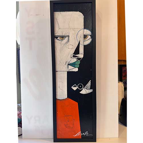 This original painting is framed simply to avoid detracting from the art. Measures 10.25" wide by 33" long. Painted on wood.