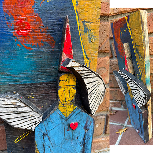 Angel with Bent Wing is 18" tall and about 10.5" wide across wing.