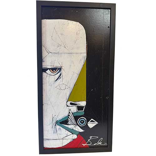 This original painting is framed simply to avoid detracting from the art. Measures 12.5" wide by 25" long. Painted on wood.