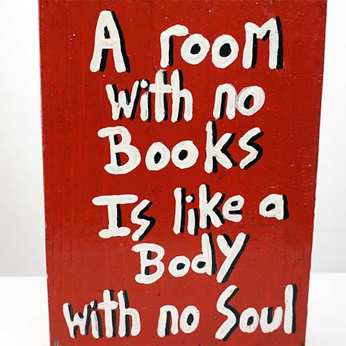 All work is painted on thick wood pieces, averaging 1.5" thick. You will notice they all are based on song lyrics. They are free standing, but also have a wire hanger on the back. Piece is is about 5.5" wide and 12.25" tall.