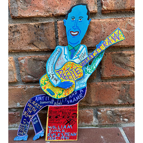 All Miz Thang's art is original. Her wooden pieces are usually cut out of cabinet grade birch and then sanded. She paints with acrylic paint and sometimes coats her pieces with shellac. She doesn’t use brushes but prefers to paint exclusively with her fingers. When her fingers are in the paint she feels connected to her art and feels she is passing along some of her special brand of mojo. She also uses objects she finds and that others give to her. Most of her art contains a message, sometimes serious, sometimes funny, depending on her mood.