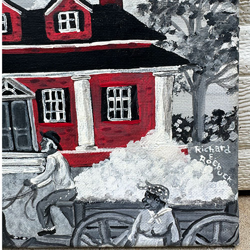 Richard E. Roebuck learned to paint as a child by watching his mother Sally Pearl paint. He was strongly influenced by her work and at an early age was sketching and painting flowers and animals in a style very similar to hers.